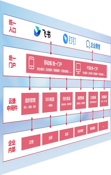 对协作平台提供支持服务,,,支持企业应用与协作平台对接,,,,包含组织同步、、、、消息集成、、、、待办集成等。。支持目前主流的协作平台:钉钉、、、企微和飞书。。。